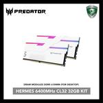 ACER PREDATOR HERMES DDR5 RGB MEMORY 32GB KIT2 RGB (2X32GB) PC 6400MHZ - BLACK - WHITE