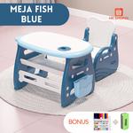 MEJA ANAK FISH ++ Usia 3-6th ++ Berat maks 50kg BONUS - Free 8 pcs Spidol warna warni - Free penghapus TERSEDIA DALAM 2 WARNA: PINK / BLUE Keunggulan Produk : - Mudah dipasang dan dibersihkan - Bisa digunakan di dalam ruangan ataupun di luar ruangan - Terdiri dari 1 set meja dan 1 buah kursi - Papan meja bisa berfungsi sebagai papan tulis/ gambar - Terdapat rak buku di sisi kanan meja Dimensi Produk Kursi : 38X42X56 cm Meja : 78x48x50 cm BERAT VOLUME: 16 KG BERAT BERSIH PRODUK : 6,5KG PENTING!! SEGALA BENTUK COMPLAINAN WAJIB SERTAKAN VIDEO SAAT SEBELUM MEMBUKA PAKET DGN RESI MASIH SEGEL TERTEMPEL DI PAKET