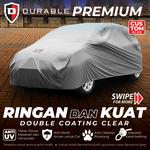 DURABLE PREMIUM Car Body Cover Perlindungan Mobil Premium yang Tangguh. Tipis dan ringan, cocok untuk berbagai kondisi cuaca. Bahan kuat dan tahan lama, tidak mudah pudar warnanya, menjaga mobil tetap bersih. Jahitan ganda untuk kekuatan ekstra & Efek Daun Talas.