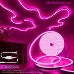 Lampu LED neon flex light aesthetic hias dekorasi tempel dinding tulisan plafon selang tahan air strip rumah toko etalase cafe estetik taman pagar kamar tidur ramadhan kado natal ulang tahun baru warna warni - Pink, 1 Meter + Soket