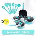 Bebehome Peralatan Masak Lengkap 13 Pcs Dalam 1 Set | Cookware Panci Set | Wajan Penggorengan Spatula Set Isi 13Pcs | 1 Set Frypan Saucepan - BIRU - HITAM, 13PCS 1SET