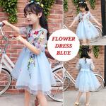 FLOWER DRESS GAUN BUNGA ANAK CEWEK FASHION KOREA IMPORT PUTIH PINK - BLUE, 130