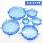 penutup makanan 6 in 1 Stretch Bowl Cover Lid Silicone food cover - Biru