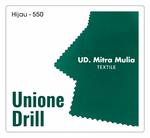 Kain Unione drill Secara umum sering digunakan untuk membuat seragam outdoor karena kualitas bahannya lebih awet. Memiliki Serat dan Hand Feel yg sama dengan Unione Drill , Tahan Gesekan dan Tarikan, Tidak Mudah Kusut, Serta memiliki tingkat ketebalan tinggi namun cukup lemas saat digunakan.