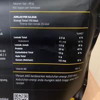 barang sudah sampai selamat tidak ada cacat. packing rapih bagus. dapat free scoop. bakal repeat order nih kalo udah abis hehehee