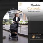 Perbedaan convertz, convertz 2.0 dan Convertz+ : convertz+ lipatnya lebih kecil, lebih compact, model keranjang, bucklenya magnetic, materialnya lebih lembut convertz 2.0 rodanya lebih besar, lalu sudah magnetic buckle Convertz+ features: - Newborn up to 22 kg - 2-in-1 ultra compact design - Reversible cot - Compact fast folding system - Reversible seat unit, folding in both directions - With recline backrest suitable for 0-48 month - 4 wheels with suspension and removable - Swivel front wheels - 5-point safety harness, linked brake - Magnetic buckle - UPF50+ canopy - Safety wrist strap - Removable front bumper bar and large storage basket - Peek-a-boo - Big rear wheels - With travel bag - Open size: 103 x 490 x 1060mm - Wheels: Front 6.5inch; Rear 8.5inch EVA/PU - Weight: Net 8.8KG ------------------------------------- Convertz 2.0 Features: - From newborn-up to 22kg - Reversible seat system - 5-point safety harness with magnetic buckle (safety harness with shoulder pads) - Large (XXL canopy) with peek-a-boo and air circulation - Canopy with UPF 50+ - Adjustable footrest and backrest - Large basket (up to 3 kg) - 360° swivel front wheels with suspension - One-brake system - Bigger wheels for extra comfort - With travel bag - Detachable bumper bar - With a thermal heat indicator (turns color above 35°) - With hand-strap - Knitted fabric 100% polyester & aluminium frame --------------------------------------- Fitur convertz: 1. Dapat digunakan dari bayi baru lahir hingga berat 22kg 2. Material kain menggunakan material yang bersertifikasi OEKO-TEX. 3. Dilengkapi dengan 5 titik sabuk pengaman 4. Dilengkapi dengan Kanopi lebar (xxl canopy), terdapat peek-a-boo dan sirkulasi udara 5. Sandaran kursi dan sandaran kaki pada stroller yang bisa disesuaikan 6. Stroller dengan sistem reversible seat 7. Terdapat Keranjang yang besar. Muat beban hingga 3 kg 8. Roda dilengkapi dengan suspensi 9. Roda depan dapat berputar dan terdapat pengunci roda 10. Dilengkapi dengan rem 11. Dilengkapi dengan tas pembungkus (tas gendong) 12. Bumper bar yang bisa dilepas pasang 13. Kanopi dengan upf 50+ 14. Terdapat thermal pada logo cocolatte. Akan berubah warna ketika suhu pada permukaan kulit lebih dari 35 derajat Berat stroller : 7.5 kg