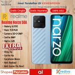 Selamat Datang Di Saints 168 Cell Promo Hari Ini: (Varian Extra Bonus) - Earphone Music - Ring Hp - Gurita - Anti Radiasi - Anti Gores (In Box) Order Di Kirim Sesuai Varian Yg Di Pesan. Tersedia 2 Jenis Varian: - Realme Narzo 50A - Realme Narzo 50i Order di Kirim Sesuai Varian Yg Di Pesan Produk yang kami jual 100% baru-asli- dan bergaransi resmi Jaminan dana kembali utuh 100% jika pesanan tidak sesuai Orderan yg masuk akan langsung kami proses dan dikirim secepatnya dihari yg sama. Spesifikasi Realme 50A: BODY Dimensions 164.5 x 75.9 x 9.6 mm (6.48 x 2.99 x 0.38 in) Weight 207 g (7.30 oz) SIM Dual SIM (Nano-SIM, dual stand-by) DISPLAY Type IPS LCD, 570 nits (HBM) Size 6.5 inches, 102.0 cm2 (~81.7% screen-to-body ratio) Resolution 720 x 1600 pixels, 20:9 ratio (~270 ppi density) PLATFORM OS Android 11, Realme UI 2.0 Chipset MediaTek Helio G85 (12nm) CPU Octa-core (2x2.0 GHz Cortex-A75 amp; 6x1.8 GHz Cortex-A55) GPU Mali-G52 MC2 MEMORY Card slot microSDXC (dedicated slot) Internal 64GB 4GB RAM, 128GB 4GB RAM MAIN CAMERA Triple 50 MP, f/1.8, (wide), PDAF 2 MP, f/2.4, (macro) 2 MP, f/2.4, (depth) Features LED flash, HDR, panorama Video 1080p@30/60fps SELFIE CAMERA Single 8 MP, f/2.0, 26mm (wide), 1/4 #34;, 1.12µm Features HDR, panorama Video 1080p@30fps SOUND Loudspeaker Yes 3.5mm jack Yes COMMS WLAN Wi-Fi 802.11 a/b/g/n/ac, dual-band, Wi-Fi Direct, hotspot Bluetooth 5.0, A2DP, LE GPS Yes, with A-GPS, GLONASS, BDS NFC No Radio Unspecified USB USB Type-C 2.0, USB On-The-Go FEATURES Sensors Fingerprint (rear-mounted), accelerometer, proximity, compass Messaging SMS(threaded view), MMS, Email, Push Email, IM Browser HTML5 BATTERY Type Li-Po 6000 mAh, non-removable Charging Fast charging 18W Reverse charging