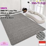 ● Ukuran 200 cm x 300 cm ● Permukaan benang polypropylene ● Diproses dengan tufting loop pile ● Gel (karet) atau felt non woven backing ● Diobras keliling ● Tebal 8 mm
