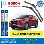 HARGA SATU SET Wiper Blade BOSCH CLEAR ADVANTAGE Frameless Size 24" dan 18" untuk Mazda CX-5 (2012-2015) - untuk tahun 2016 keatas belum bisa.