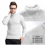 Baju leher tinggi turtleneck pria lengan panjang | Kaos kerah tinggi - Putih, L