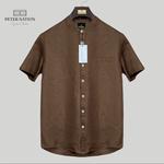 Kemeja pure linen peternation kerah sanghai lengam pendek all variant - Coffee, XL