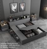 Dipan Modern Minimalis Mewah dengan laci penyimpanan, kepala ranjang / bedhead dan nakas (bedside) Dengan 2 varian. Support untuk ukuran bed 160cm x 200cm sampai 200cm x 200cm dan BELUM TERMASUK pembuatan backdrop pada sisi kepala ranjang 1. Harga Custom ukuran mulai dari 3 jt/m2 2. Untuk Varian Custom dimungkinkan penambahan storage lipat dubawah kasurnya 3. Harga Penambahan Backdrop mulai dari 2,5 jt/m2 tergantung ketinggian plafond ruangan Material : 100% Plywood Meranti 18mm Finishing Tampak Luar : HPL TACO Series Finishing SIsi Dalam : TACO Sheet Hardware : TACO Softclosed HUB: 0813.2221.22.29