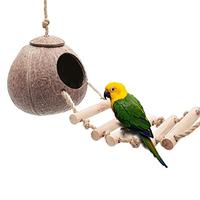 Seaokais Coconut Bird Nest with Ladders Pet Hanging House Play