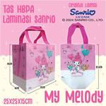 (LUSINAN 12PCS) Tas Spunbond Tali Laminasi Motif Sanrio Lucu Uk. 25x35x8 /25x25x15/ 22x25x9 / Tas Bungkus Kado Hello Kitty Micky Kuromi/ Hamper Souvenir / Tas Ulang Tahun - BOX MY MELODY