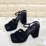 Sepatu Heels Wanita ZS 171 Platform Sepatu Heels Pesta Wanita - Black Satin, 38