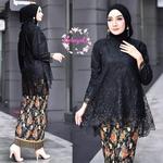 Kebaya Wisuda Hijab Setelan Kebaya Azkia Tulle Baju Wisuda Terbaru - Hitam, XXL