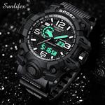 Nama Merek: SUNLIFEX Nomor Model: D001 Gerakan: Quartz Style: Sport, Fashion, Miliary, Cusual Bentuk Kasus: Round Band Jenis Bahan: Silicone Case Bahan: Stainless steel Dial Window Jenis Bahan: Kaca Jenis Gesper: Gesper Fitur: Tanggal Otomatis, Kronograf, Tangan Bercahaya, Kedalaman Kedap Air Tahan Guncangan: 3Bar (Tidak dapat menyentuh air panas, Tidak dapat menekan tombol apa pun di bawah air)