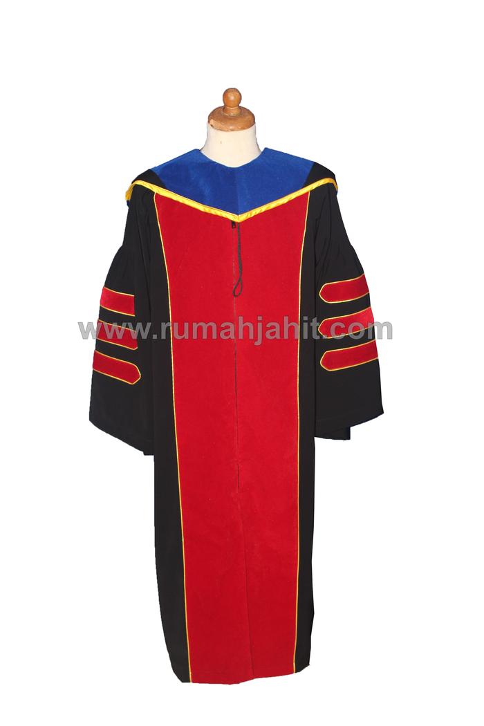 KETERANGAN Produk : Jubah Wisuda Guru Besar Bahan : Super Jetblack Kombinasi Bludrue Biasa Warna : Hitam Model : Standard Toga Wisuda Aplikasi : - Kancing Resleting - Remple bagian depan dan tangan Size : S, M, L, XL *Harga yang tertera hanya untuk jubah wisuda guru besar saja. *Cantumkan ukuran pada keterangan pesanan.