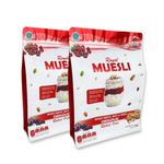 HALAL MUI Silahkan pilih variant (ORIGINAL atau AMAZING atau MIX) ORIGINAL : 2 x ORIGINAL AMAZING : 2 x AMAZING MIX : 1 x ORIGINAL + 1 X AMAZING Komposisinya ORIGINAL: Cranberry, Raisin, Almond UTUH, Chia seeds, Pumpin Seeds, Sunflower Seeds dan ROLLED Oats Komposisinya AMAZING: Cranberry, Raisin, Almond SLICE, Chia seeds, Pumpin Seeds, Sunflower Seeds dan INSTANT Oats Manfaat nutrisi yang dikandung dalam muesli : - Kandungan seratnya sangat tinggi dan gandum yang terkandung di dalam muesli membuat menu ini baik untuk kerja sistem pencernaan dan dapat membantu Anda yang mengontrol berat badan. - Adanya kacang-kacangan dalam muesli membuat menu ini merupakan sumber protein yang baik dan asam lemak omega-3 - Muesli merupakan makanan yang mengandung antioksidan tinggi yang berfungsi untuk mencegahan penyakit kanker. - Menghindari penyakit jantung karena kandungan protein yang tinggi pada muesli. - Penelitian menyebutkan jika seseorang lebih memilih kandungan protein untuk mengurangi konsumsi karbohidrat, maka ia akan lebih mudah untuk menurunkan tekanan darah dan kolesterol. - Meningkatkan sistem imun yang membuat seseorang tidak mudah sakit karena protein dalam muesli yang dikonsumsi bersama dengan susu dapat membantu sistem kekebalan tubuh. INSTRUKSI MENGKONSUMSI ORIGINAL : - Masak kurang lebih 5 - 10 menit muesli + susu sampai menjadi oat nya lembek - Merendamnya semalaman dengan susu, yoghurt, atau larutan favorit Anda lainnya - Panaskan susu, tuangkan susu panas ke atas muesli, rendam muesli beberapa saat sampai teksturnya menjadi lebih empuk (jika dimasak cara pertama akan lebih lembek) INSTRUKSI MENGKONSUMSI AMAZING : - Bisa langsung menggunakan Susu/Air Panas