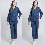 Baju Oka Perawat Wanita Lengan Panjang Setelan Celana - Navy-V Pjg+Cln, S