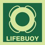 Sign dengan warna dasar hijau dan piktogram berupa ban pelampung ini berfungsi untuk menunjukkan lokasi penyimpanan lifebuoy. Pelampung penolong atau lifebuoy digunakan untuk menolong seseorang yang terjatuh dari atas kapal atau Man Over Boat. Lifebuoy ini akan di lempar ke air untuk mencegah korban terseret arus air dan tenggelam.