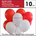 BALON LATEX: -Ukuran 12 inch -Warna Merah Putih -Isi 10 pcs (5 Merah, 5 Putih)
