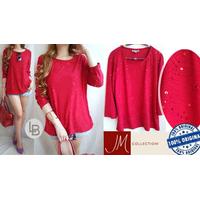 Jm Coll Red Glitter Tee Blouse
