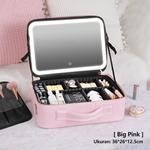 Beauty Fame ✨Garansi 1 Tahun✨Tas Makeup Lampu / Led Makeupartist Case S / L Full Mirror Bag Mua Beauty Bf - Pink + LED light-L