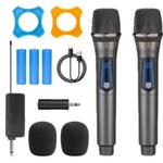 Microphone Profesional 2 Mic Wireless Wireless Bluetooth Mic Microphone Mikrofon Karaoke Free Garansi 3Tahun Home Mobil With Receiver System Mic Karaoke Genggam Recahrge / Bisa isi Ulang ** - abu-abu 2pcs