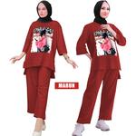 Top Model 000104 Setelan Dewasa SETCEL VIRAL Cewek Perempuan kaos baju pakaian dewasa Abg Remaja - Marun, XL