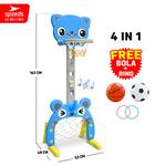 SPEEDS Ring Basket Anak / Tiang Basket / Basketball Pole 4in1 / Gawang Bola Ring Basket ini dapat digunakan anak untuk bermain lempar dan tendang bola. Dilengkapi dengan ring atas untuk memasukan bola basket ke keranjang dan gawang bawah untuk memasukan bola layaknya sepak bola. Dilengkapi dengan berbagai macam fitur menarik yang dapat menambah kecerian anak dan membuat anak lebih nyaman bermain. Fitur-fiturnya antara lain: 1. Ketinggian yang dapat diatur. Dengan begini, tiang basket dapat disesuaikan sesuai ketinggian anak, menjadikannya lebih mudah untuk digunakan. 2. Pemutar musik. Terdapat pemutar musik yang dapat digunakan untuk menceriakan suasana. 3. Ring Basket. Dapat digunakan anak untuk memasukan bola basket. 4. Gawang basket. Dapat digunakan anak untuk memasukan bola sepak, dengan cara ditendang. 5. Ring ketangkasan. Dapat digunakan untuk melatih koordinasi anak. 6. Penyangga depan belakang. Untuk memperkuat keseimbangan tiang basket. Informasi produk: Nama: Basketball Pole 4in1 Bahan: Plastik HDPE Ukuran: 52x48x163cm Warna: Pink dan Biru Berat: 3.000g