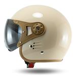 Merupakan helm retro yang sudah berstandar SNI dengan fitur kaca atau visor retro berbentuk B (setengah wajah) yang bisa di buka dan tutup berfungsi sebagai pelindung area wajah saat berkendara dari debu dan partikel-partikel asing. Pada frame kaca dan list karet helm menggunakan warna kalem nan elegan menambah kesan aesthetic pada helm dan tentunya tampil beda dari pengendara motor lain.