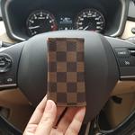 Technozio Dompet STNK Mobil /Gantungan kunci mobil Motif Kotak - Cokelat