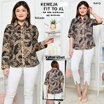 BLOUSE KEMEJA LENGAN PANJANG & 3/4 BATIK WANITA ATASAN KATUN FIT TO XL - Navy, Lengan Panjang