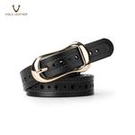 Belt Name : Voila Diana Belts Material: Genuine Leather Gender: WOMEN Belt Length 105 cm Belt Width: 2.5 cm Style: Casual / Semi Formal Pattern Type: Line & Holes Flowers Pattern Buckle Material : Solid Rose Gold Buckle Packaging : Box