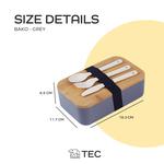 【TEC】BAKO Bento Box Kotak makanan Bekal Makanan Kotak Penyimpanan Makanan Lunch box Kotak Bekal Estetik Kayu minimalis Kotak Makan Tempat Makan Sendok Garpu - Grey