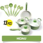 New Iniana Panci Set 13 PCS Tutup Kaca Serbaguna panci set lengkap stainless steel Non-stick Berkualitas - hijau