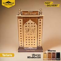 Mimbar Kayu Jati Ukiran Kaligrafi Masjid/Mushola - 90 x 60 x 120Cm