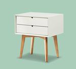 Meja samping dengan desain korean minimalis modern, yang dilengkapi 2 laci hidup untuk menyimpan barang