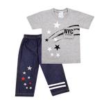 Wakakids Pakaian Bayi Anak Laki Laki Baju Lengan Pendek Motif NYC Star Setelan Celana Jeans 7/8 Usia 12 Bulan Hingga 18 Bulan 3499 - Abu-abu