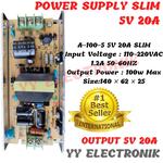 A-100-5 5V 20A SLIM input voltage : 110-220VAC 1.2A 50-60HZ Output power:100w Max Size:140x62x25