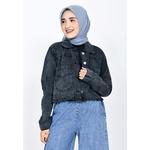 Jaket Jeans Crop Wanita Zahra Signature Jaket Jeans Silvia - SNOW BLACK